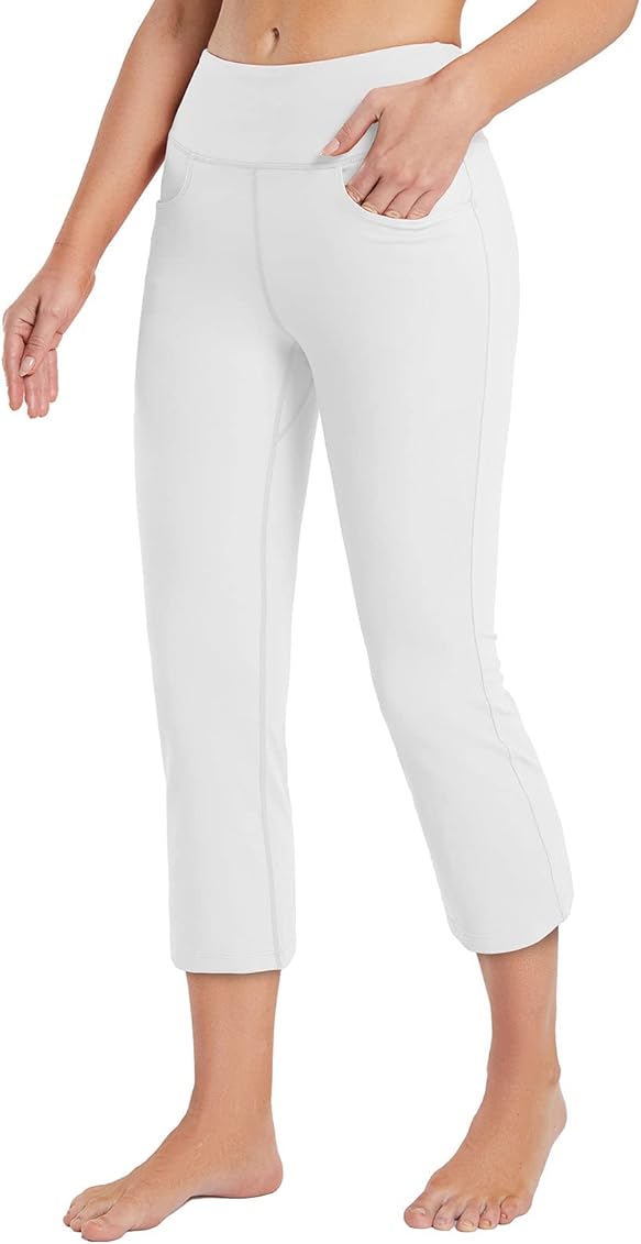 Amazon Com Baleaf Women S Capri Yoga Pants Casual Summer Pull On Stretch Capris Knit Leggings With Front Pockets White L Clothing Shoes Jewelry